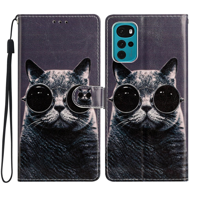 Estuche de Cuero para Motorola Moto G22 con Dibujo Coloreado Gafas de Sol Cat