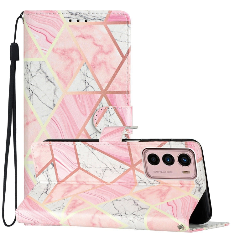 Estuche para Motorola Moto E13 de Cuero con Dibujo Coloreado Mármol Rosa