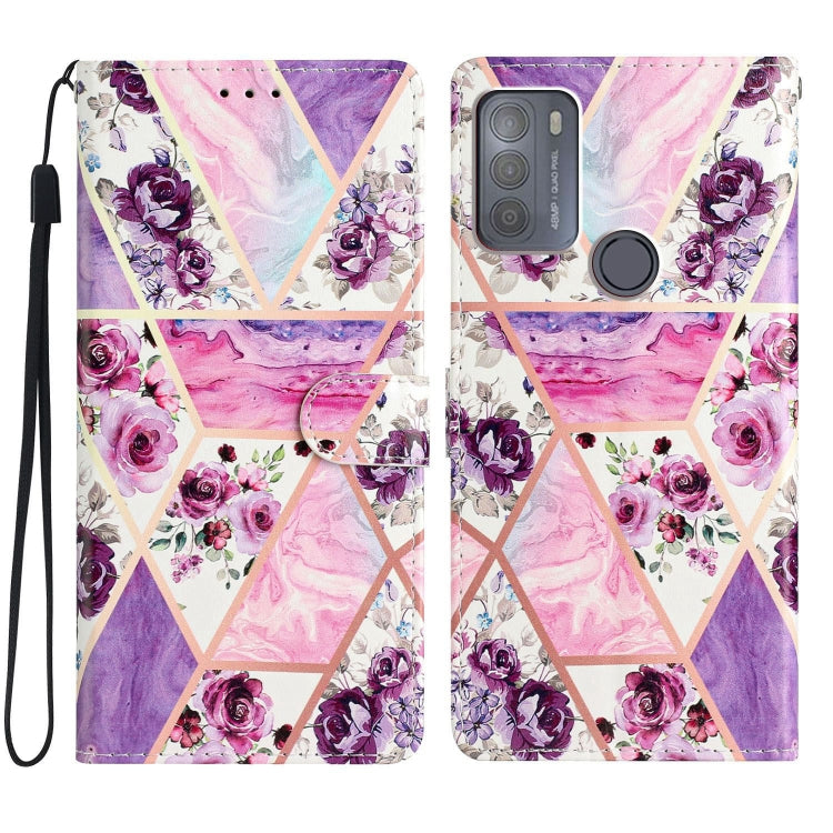 Estuche de Cuero para Motorola Moto G50 con Dibujo Coloreado (Mármol Púrpura)