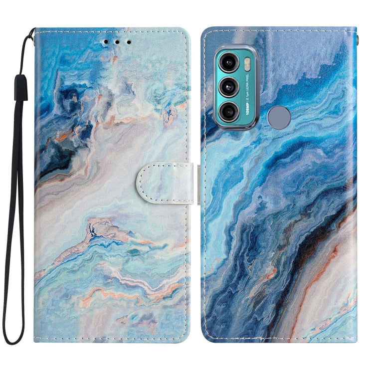 Estuche de Cuero para Motorola Moto G60 con Dibujo Coloreado Mármol Azul