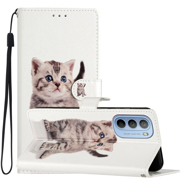 Estuche de Cuero para Motorola Moto G62 con Dibujo Pequeño Gato Atigrado