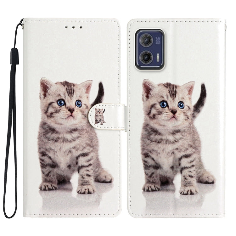 Estuche de Cuero para Motorola Moto G73 con Dibujo de Pequeño Gato Atigrado