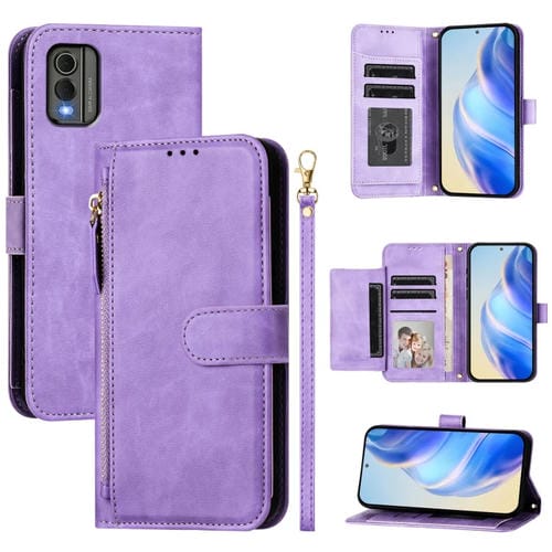 Funda de Cuero con Cremallera y Ranuras para Tarjetas para Nokia G21/G11 (Morado)