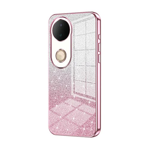 Estuche para Teléfono con Purpurina En Degradado Galvanizado para Vivo S20 (Rosa)