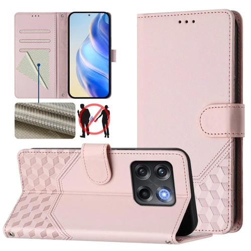 Funda de Cuero Rfid con Relieve en Panal para OnePlus Ace Pro 5G/10T 5G (Rosa)