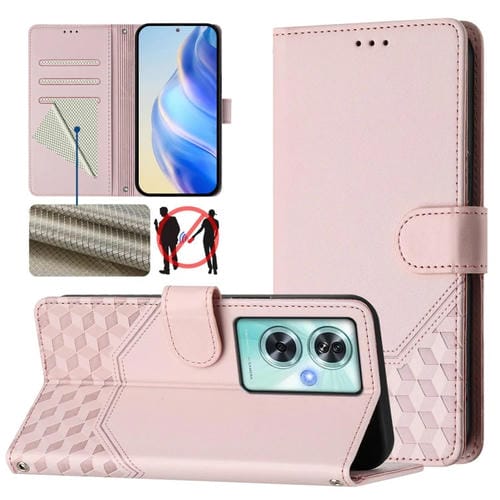 Funda de Cuero Rfid con Relieve en Panal para OnePlus Nord N30 Se 5G (Rosa)