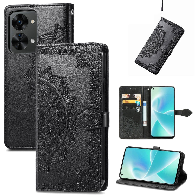 Funda Horizontal Flip de Cuero para OnePlus Nord 2T Mandala Flower (Negro)