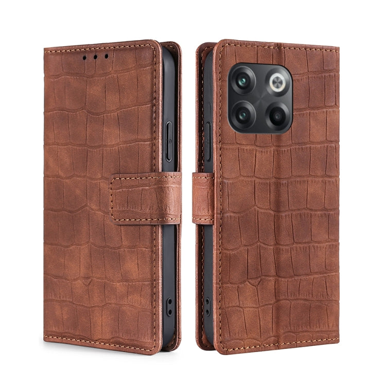 Funda de Cuero OnePlus 10T Skin Feel Cocodrilo con Cierre Magnético (Marrón)