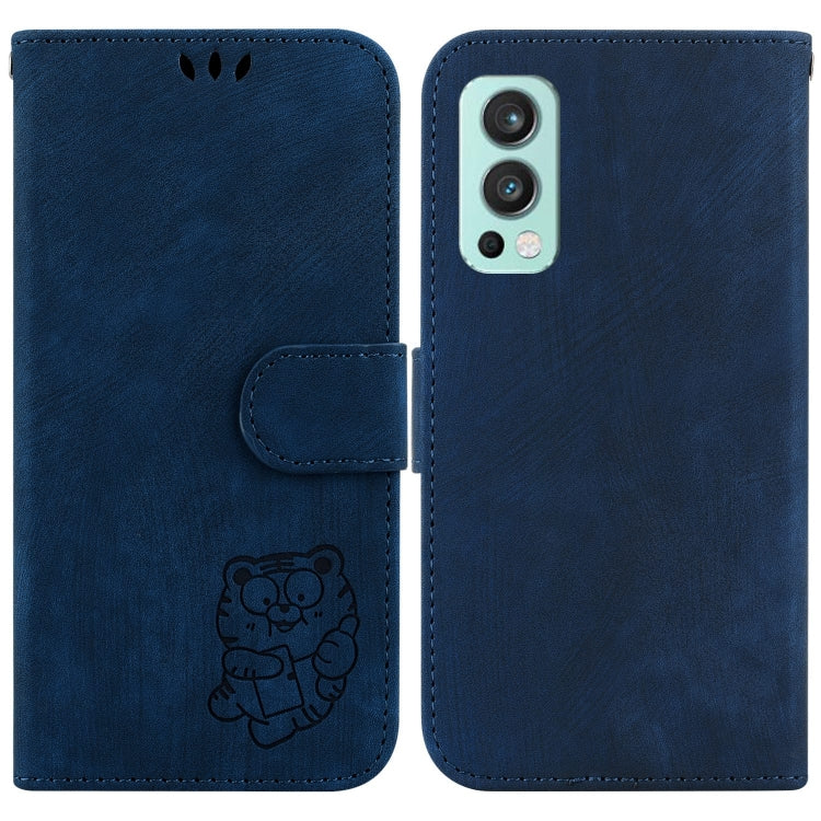 Funda de Cuero para OnePlus Nord Ce 2 5G con Relieve Little Tiger (Azul Oscuro)