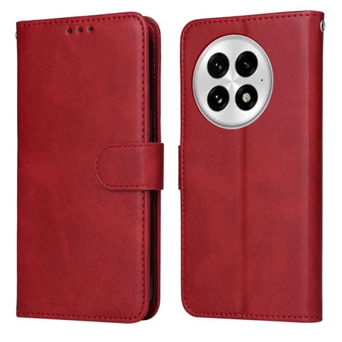 Funda de Piel con Tapa para OnePlus 13 (Rojo) Textura Clásica de Becerro