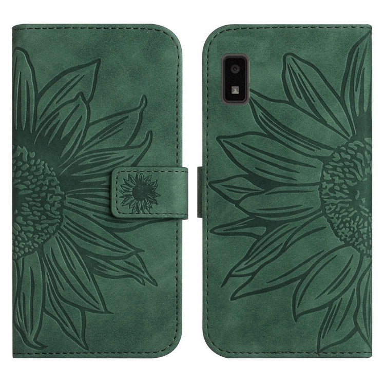 Funda Flip de Cuero para Sharp Aquos Wish con Cordón y Patrón Sun Flower (Verde)