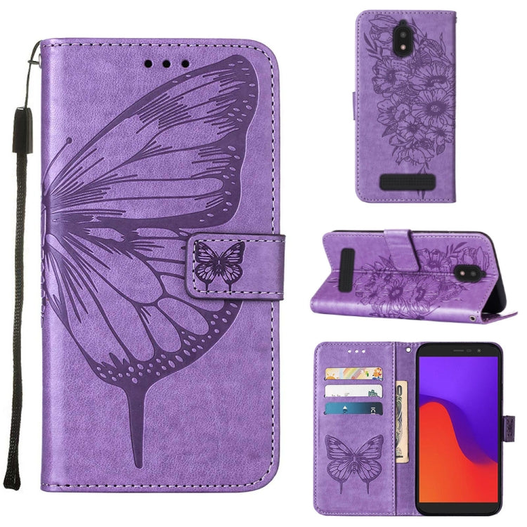 Funda de Cuero para BLU View 2 2022/2020 con Tapa de Mariposa en Relieve (Púrpura)