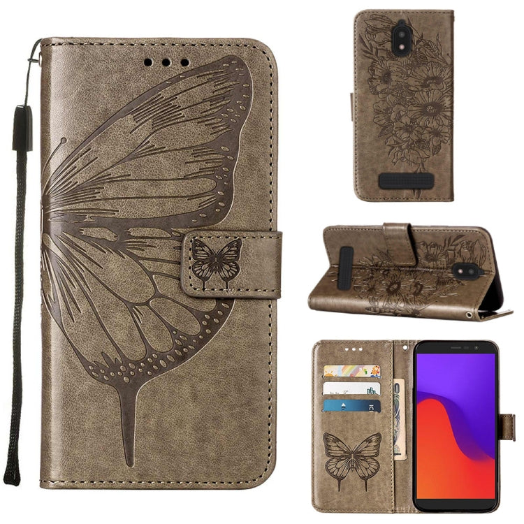 Estuche para Teléfono BLU View 2 (2022 / 2020) Cuero con Tapa de Mariposa (Gris)