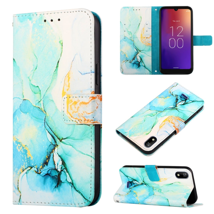 Funda de Cuero con Tapa para Moxee M2160 Pt003 con Patrón de Mármol (Verde)
