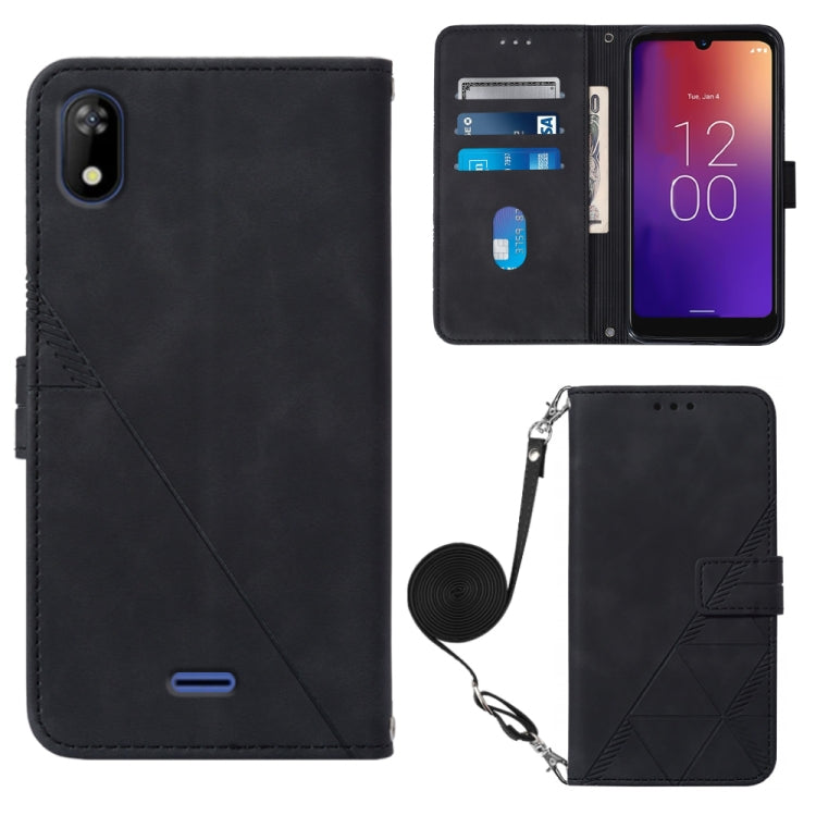 Funda de Cuero para Moxee M2160 Crossbody con Tapa 3D En Relieve (Negro)