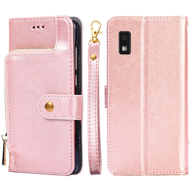 Funda de Cuero para Teléfono Sharp Aquos Wish 3 con Cremallera (Oro Rosa)