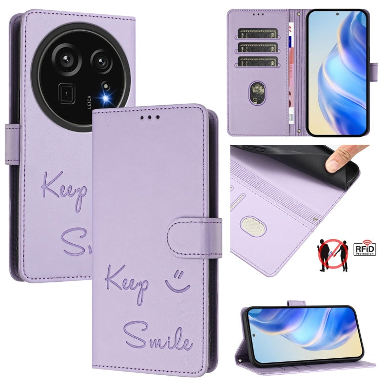 Funda de Cuero Rfid con Relieve Sonriente para Sharp Aquos R9 Pro (Morado Claro)