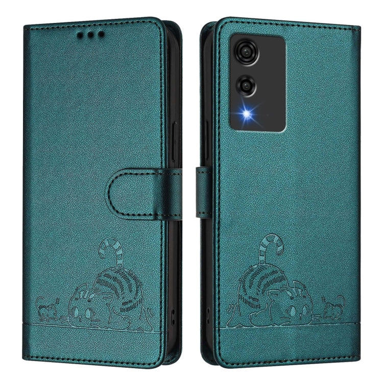 Funda de Cuero RFID Cubot A10 con Cordón Patrón Gato y Rata (Verde Pavo Real)