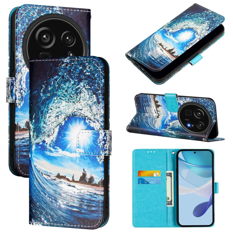 Funda de Cuero para Sharp Aquos R9 Pro Sh-54E con Diseño Ondas y Sol (Color Liso)