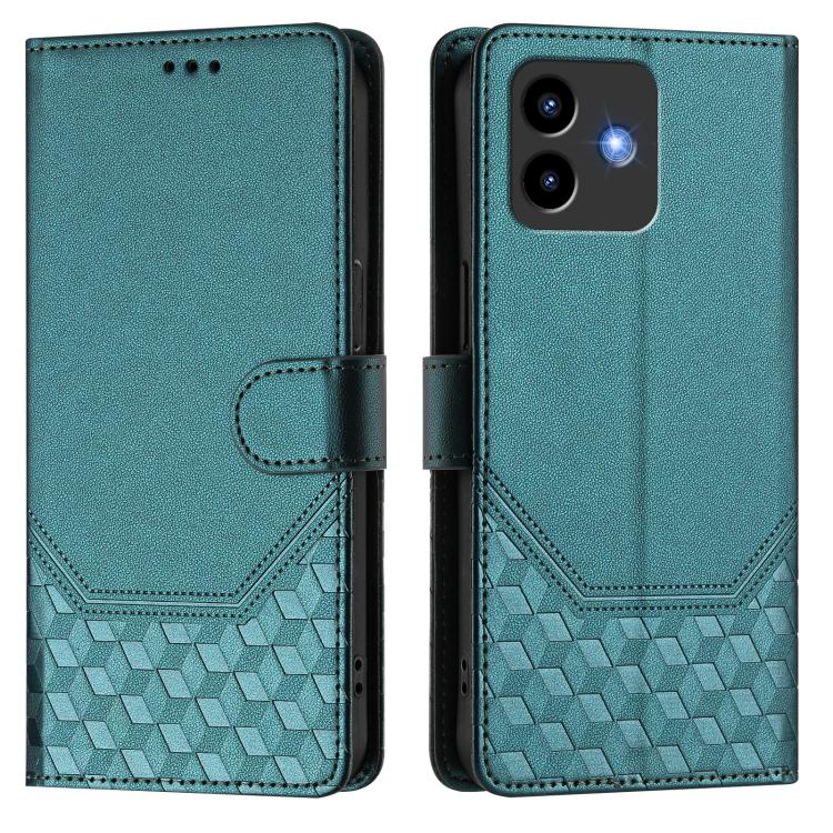 Funda de Cuero Rfid con Relieve en Panal para Cubot Note 40 (Verde Pavo Real)
