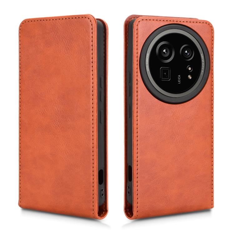 Funda de Cuero para Sharp Aquos R9 Pro con Tapa Vertical Magnética (Marrón)