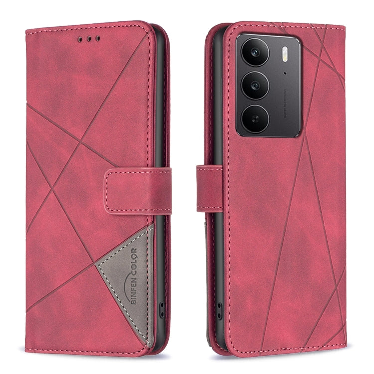 Funda de Cuero con Textura de Rombos y Hebilla Magnética para Realme C75 4G (Rojo)