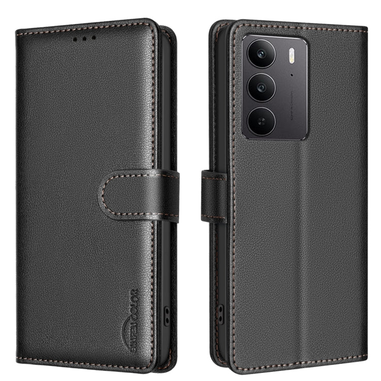 Funda de Cuero Antirrobo Rfid con Textura Litchi para Realme C75 4G (Negra)