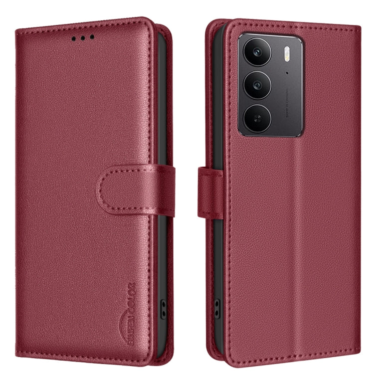 Funda de Cuero Antirrobo Rfid con Textura Litchi para Realme C75 4G (Rojo)