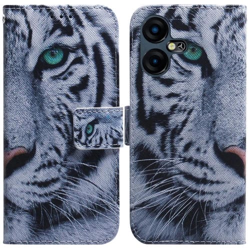 Funda de Cuero con Tapa para Tecno Pova Neo 3 Dibujo Coloreado (Lobo Blanco)