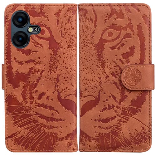 Funda Flip de Cuero para Tecno Pova Neo 3 con Patrón Tiger Embossing (Marrón)