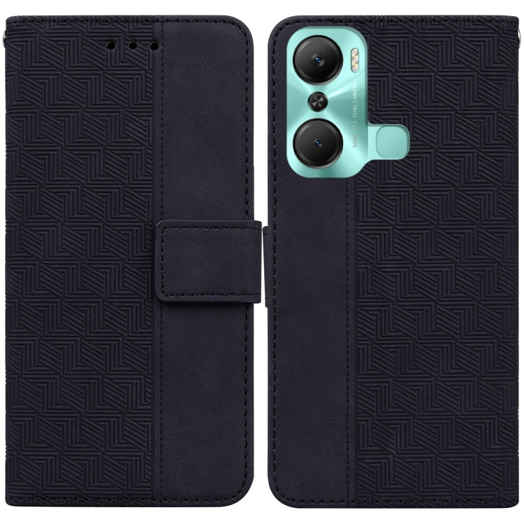 Estuche de Cuero para Infinix Hot 12 Pro con Tapa en Relieve Geométrico (Negro)