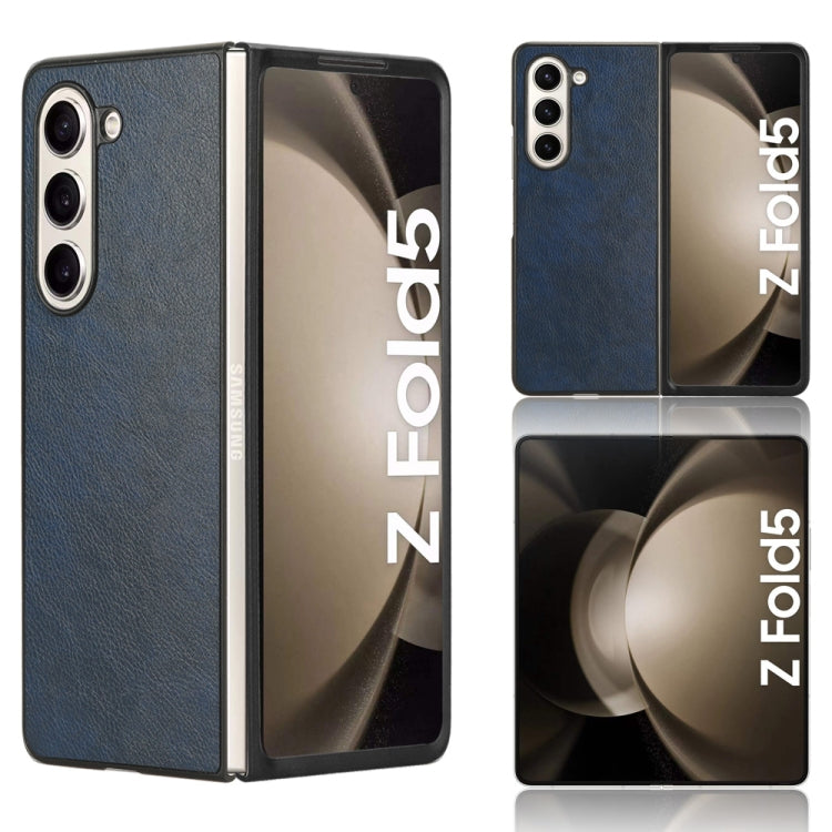 Contraportada Samsung Galaxy Z Fold5 Litchi Textura Caja del Teléfono (Azul)