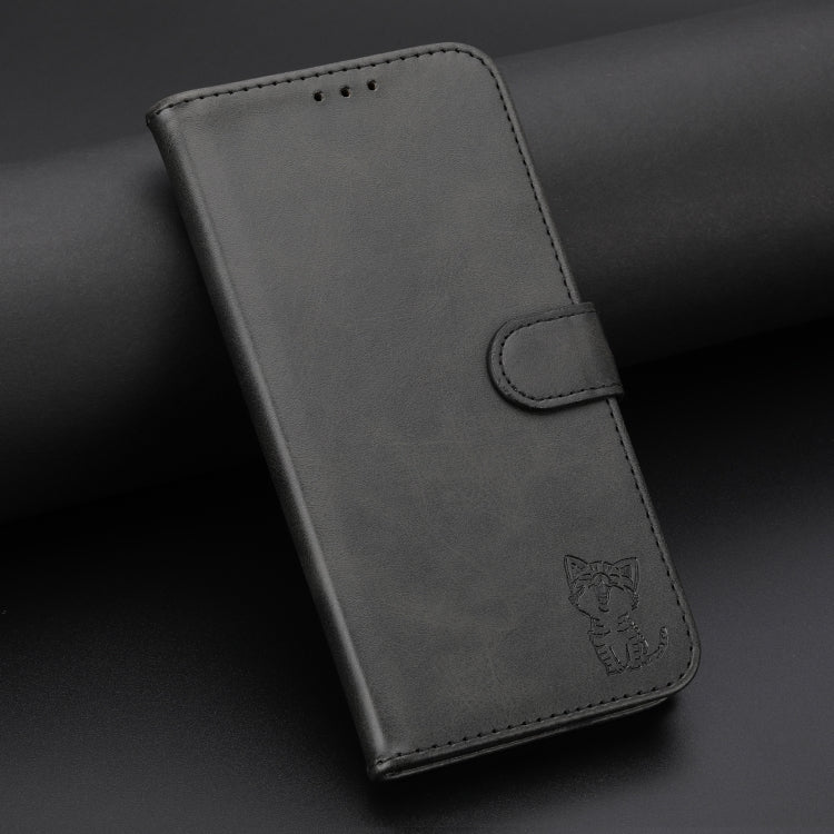 Funda de Cuero con Tapa para Sony Xperia 5 Vi Diseño de Gato En Relieve (Negra)