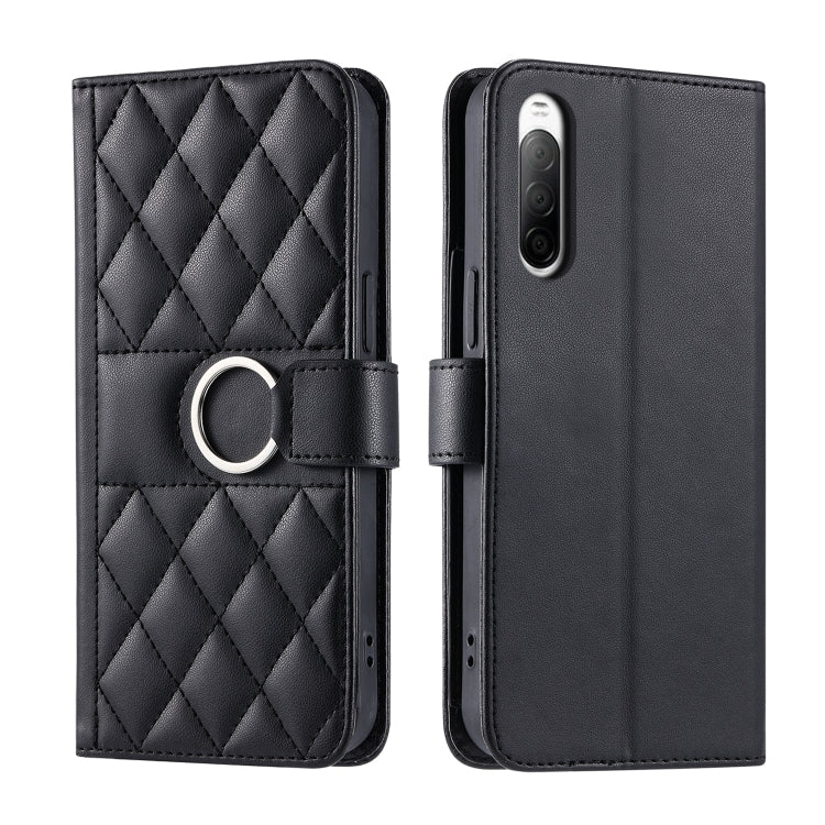 Funda de Cuero con Hebilla de Anillo y Diseño Rombal para Sony Xperia 10 III (Negra)