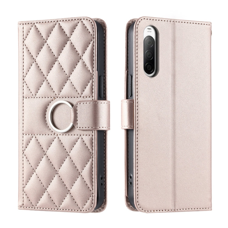 Funda de Cuero Sony Xperia 10 III con Diseño Rombal y Hebilla de Anillo (Oro Rosa)