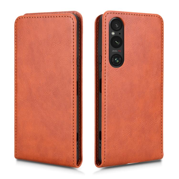 Funda de Cuero con Tapa Vertical Magnética para Sony Xperia 1 V (2023) (Marrón)