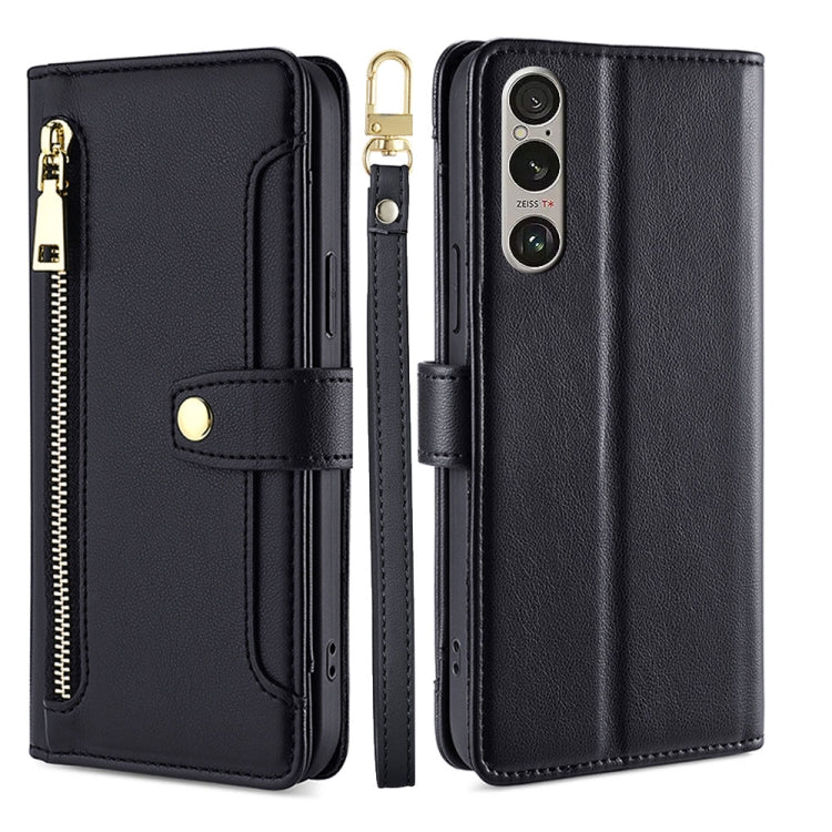 Funda de Cuero Tipo Billetera con Cremallera para Sony Xperia 1 Vi Lite (Negra)