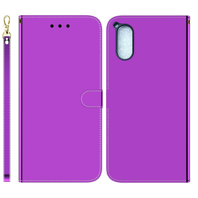 Estuche para Sony Xperia 5 V de Cuero con Superficie de Espejo Imitado (Púrpura)