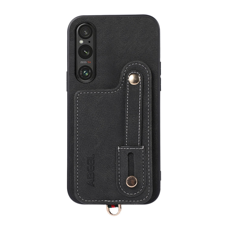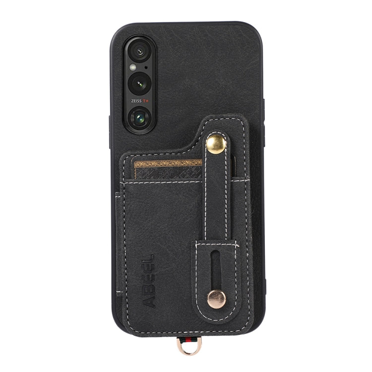 Funda para Sony Xperia 1 V Abeel Litchi Texture con tarjetero y PU (Negro)