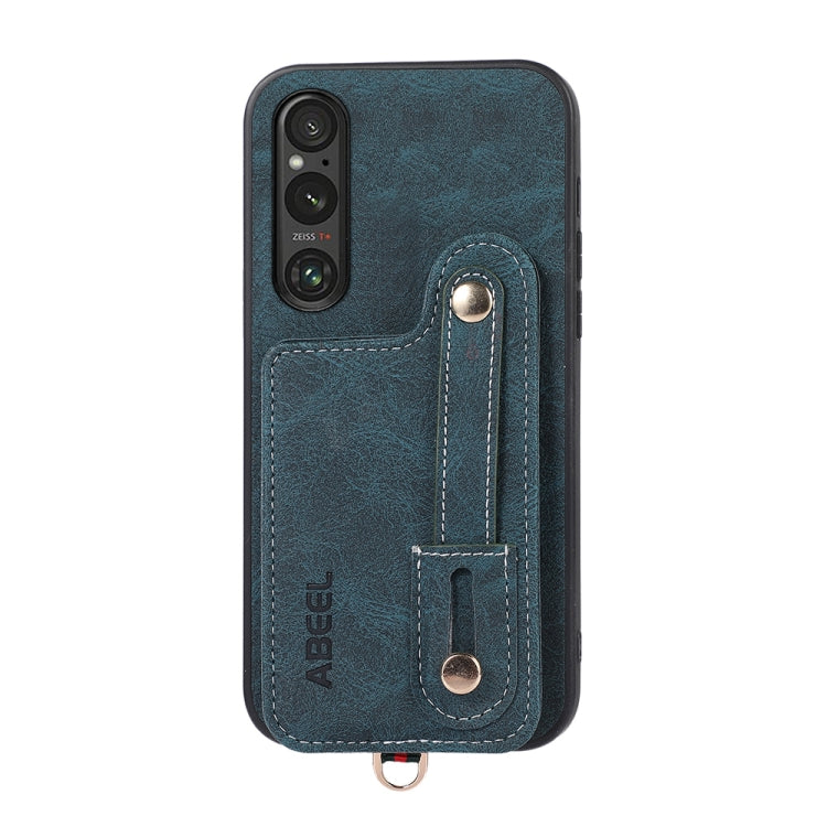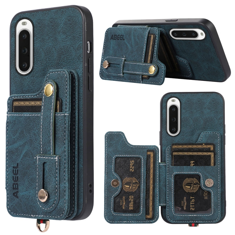 Funda para Sony Xperia 1 V Abeel Litchi Texture con Bolsa para Tarjetas PU (Azul)