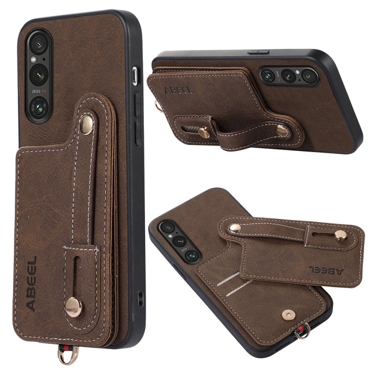 Funda para Sony Xperia 1 V Abeel con Textura Litchi y Porta Tarjetas en PU (Caqui)