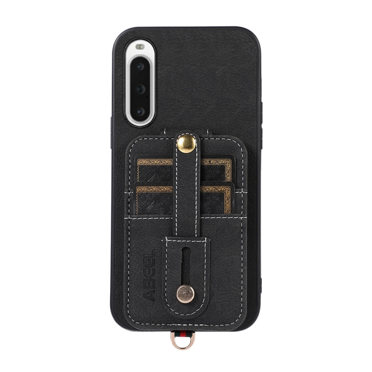 Funda para Sony Xperia 10 V Abeel con Textura Litchi y Tarjetero PU (Negro)