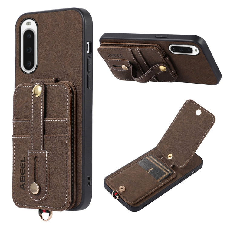 Funda para Sony Xperia 10 V Abeel Litchi Texture con tarjetero en PU (Caqui)