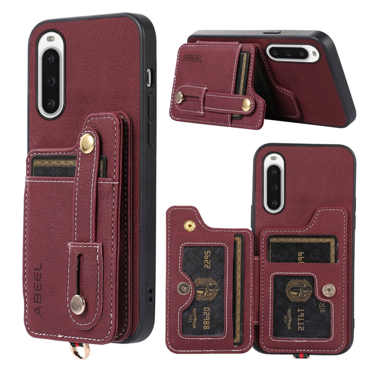 Funda para Sony Xperia 1 V Abeel Litchi Texture con Tarjetero PU (Púrpura)