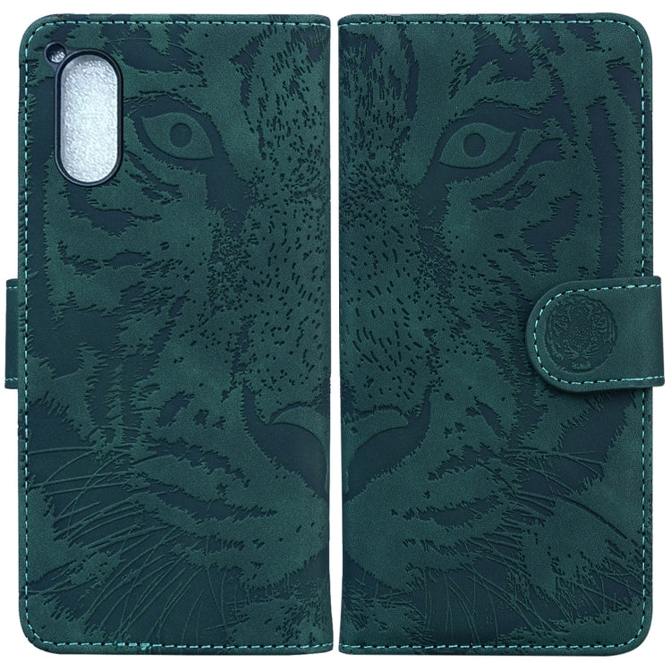 Funda Flip de Cuero para Sony Xperia 5 V con Patrón Tiger Embossing (Verde)