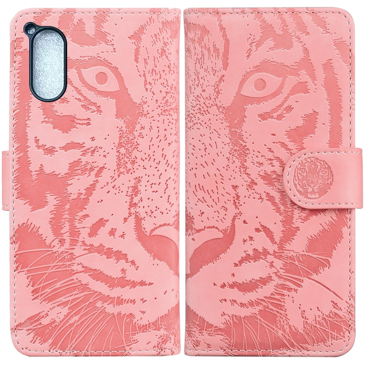 Funda de Cuero Flip para Sony Xperia 5 V con Patrón Tiger Embossing (Rosa)