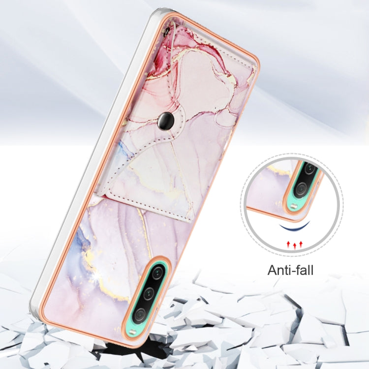 Estuche para Sony Xperia 10 IV con Ranura para Tarjeta y Patrón Mármol (Oro Rosa)