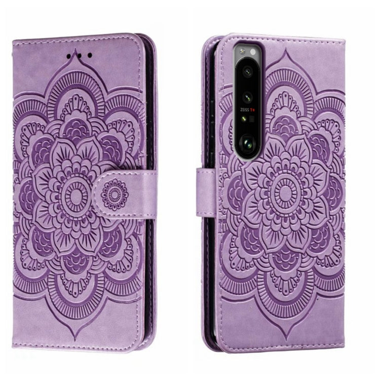 Funda de Cuero para Sony Xperia 1 III con Patrón En Relieve Sun Mandala (Púrpura)