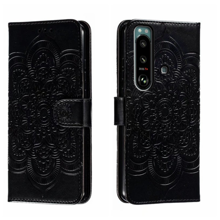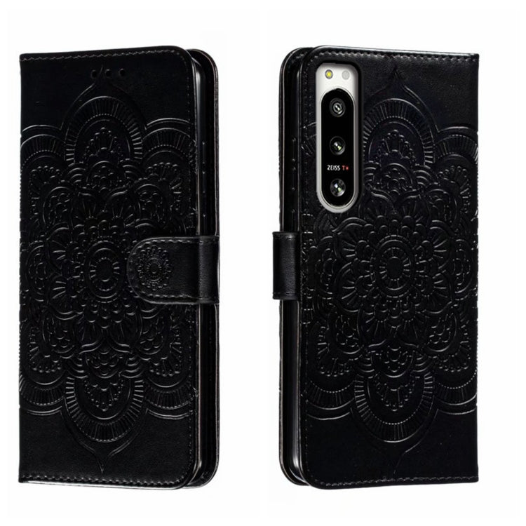 Funda de Cuero para Sony Xperia 5 IV con Patrón Sun Mandala en Relieve (Negro)