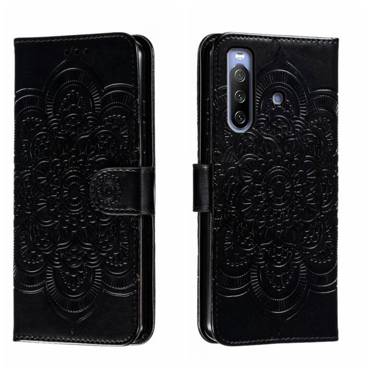Funda de Cuero para Sony Xperia 10 III con Patrón Sun Mandala en Relieve (Negro)